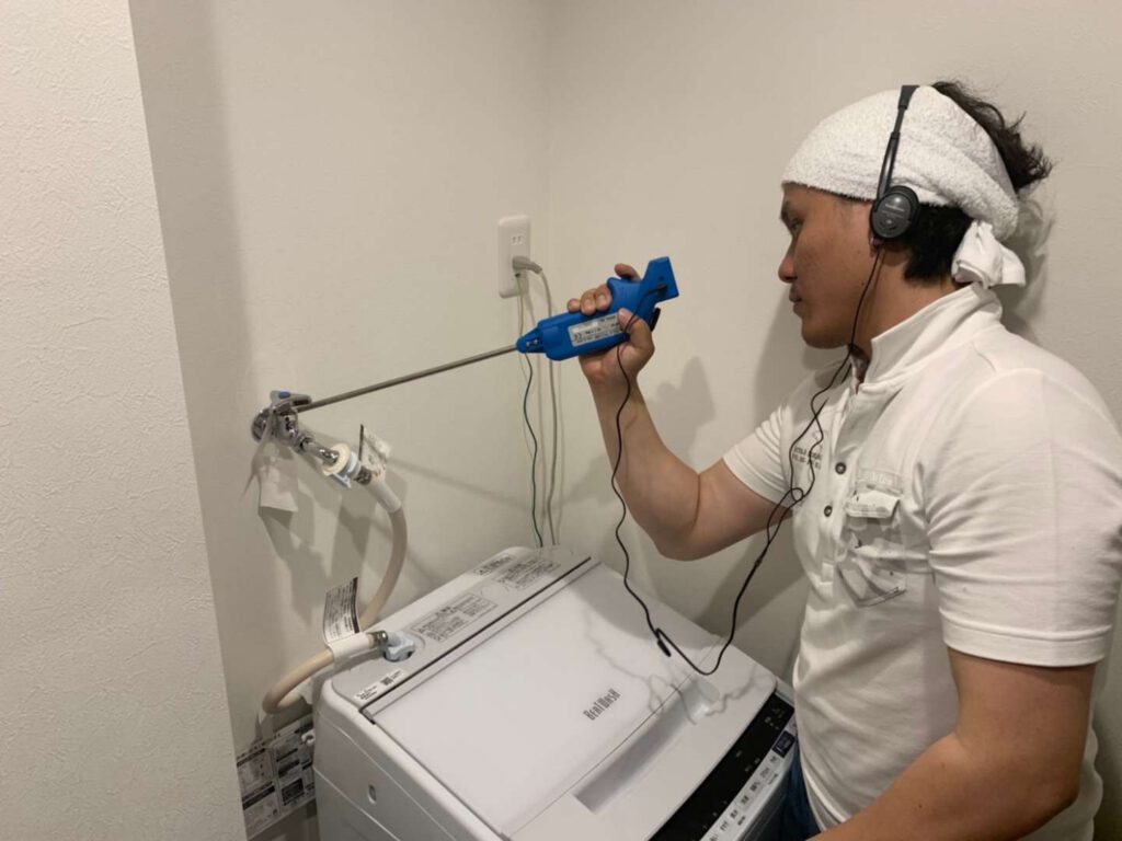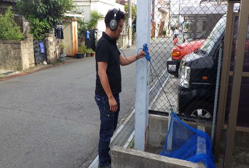 これらの音聴調査は、音聴棒や電子音聴器を使用し、対象となる敷地内にある弁栓(蛇口、バルブ、消火栓、アングル止水など)から漏水音を調査する方法で、弁栓付近での漏水範囲を確定させることができます。